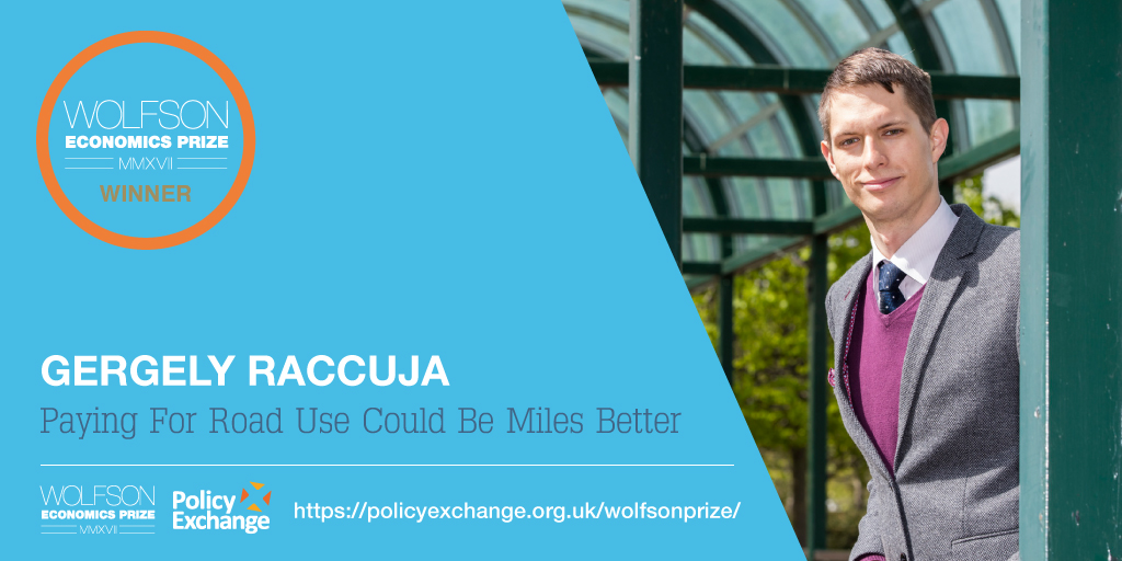A Policy Exchange ismertetése szerint Raccuja Gergely azt javasolta díjnyertes pályaművében, hogy meg kellene szüntetni az üzemanyag jövedéki adóját, valamint az Egyesült Királyságban jelenlegi formájában 1920 óta létező járműadót, amelyet a közúti közlekedésben résztvevő csaknem minden géperejű jármű után évente fizetniük kell az üzemeltetőknek, és helyette a megtett távolsággal arányos, a környezetvédelmi hatásokat is figyelembevevő útdíjrendszert kellene meghonosítani.