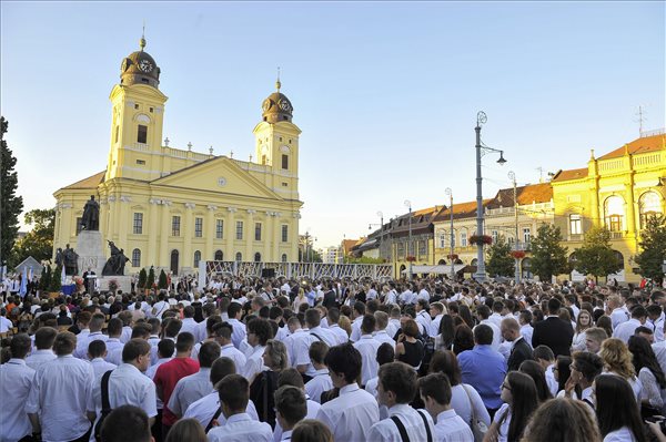 Városi tanévnyitó ünnepség a debreceni Kossuth téren 2016. augusztus 31-én. MTI Fotó: Czeglédi Zsolt
