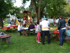 A vállalat önkénteseinek részvételével aztán kezdetét vette az önkéntességi nap programja, kézműves programokkal, ugrálóvárral, pónilovaglással, óriás buborék készítéssel, végül egy vidám táncházzal.