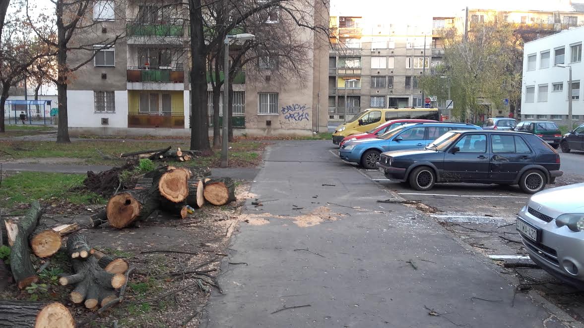 Több személygépkocsiban is kárt tett az a nagy fa, amelyik a viharos szél hatására kidőlt az Erzsébet utca felé vezető úgynevezett Névtelen utcán.