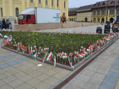 Hagyományosan az országzászló felvonásával kezdődött a debreceni megemlékezés, majd a Petőfi szobornál folytatódott az ünnepség.