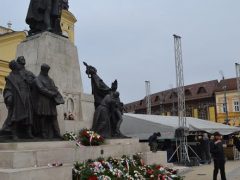 Hazám, hazám… címmel a cívisváros főterén 11 órakor kezdődött az ünnepi megemlékezés és koszorúzás. Az ünnepi műsorban többek között a Csokonai Színház művészei, az Ady Endre Gimnázium diákjai és a Debreceni Hajdú Táncegyüttes táncosai működtek közre.