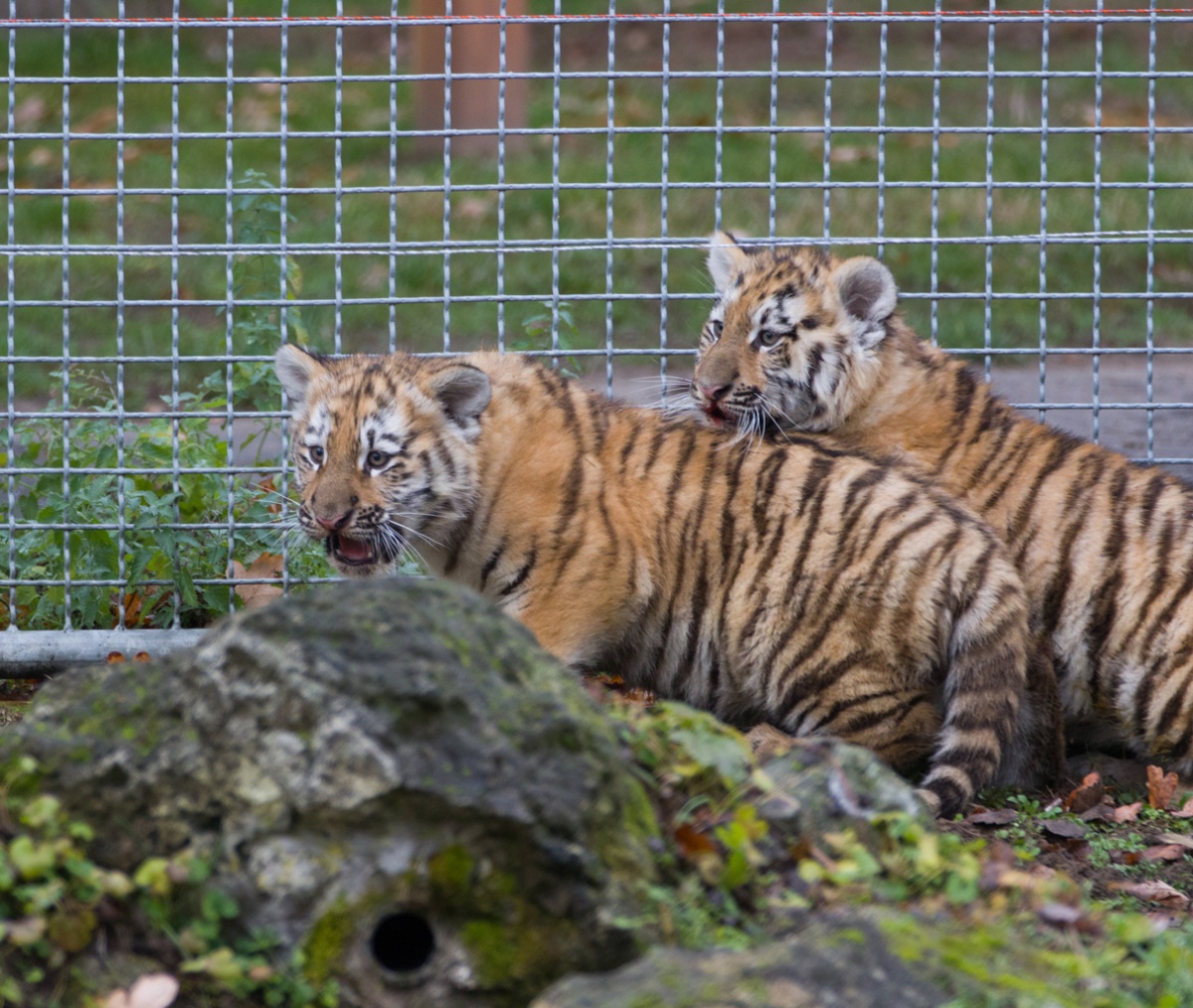 A számos kreatív névjavaslat közül az ezentúl Dana és Dária névre hallgató kistigrisek a kötelező állatorvosi ellátást követően birtokba vették a számukra világot jelentő kifutót.