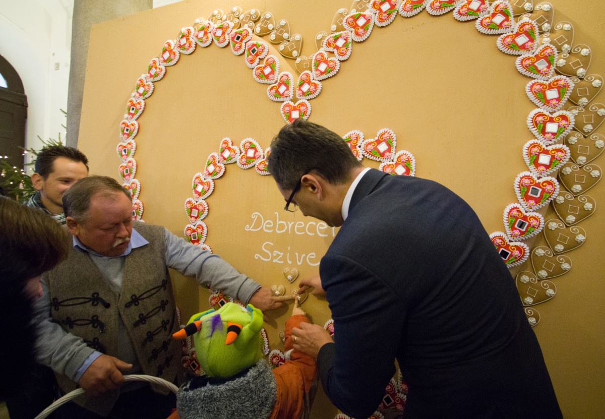 A sajtótájékoztatót követően a városháza bejárati aulájában felavatták “Debrecen szívét”, egy hatalmas szív alakú mézeskalácsot, amelyet további sok-sok mézeskalács szív díszít. A körülötte lévő kis karácsonyfákat a városi és az egyházi vezetők óvodások segítségével díszítették fel kis mézeskalácsokkal.