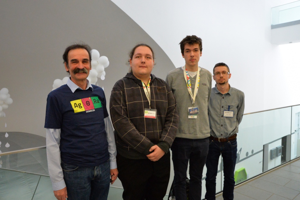 A fotón balról jobbra: Zajácz György, az Agóra csillagásza, Csire Roland és Tófalusi Ádám versenyzők, valamint Kovács Gergő, az Agóra csillagásza.