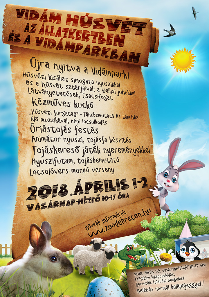 Húsvét hosszú hétvégéjén ünnepi programokkal és hosszabbított nyitva tartással várja látogatóit a Debreceni Állatkert és Vidámpark.
