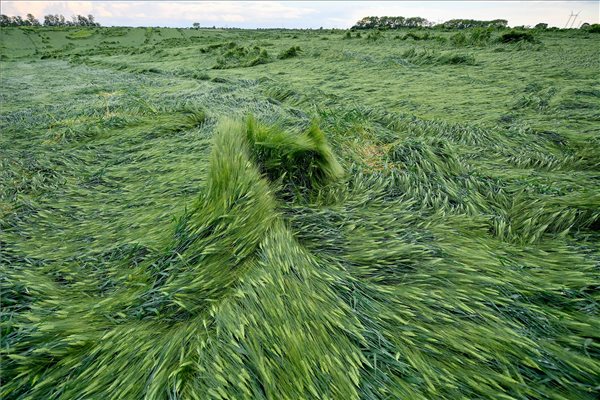 Több mint 30 milliméter csapadék hullott kevesebb mint 24 óra alatt. Ez már a búzának is sok volt.A hirtelen nagy mennyiségű eső és erős széllökések miatt földre borult a búzamező Debrecen-Józsa határában 2018. május 16-án.