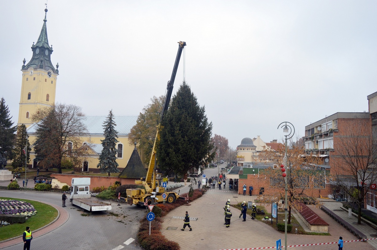 A hajdúváros karácsonyfáját 2018. november 23-án, péntek délelőtt állították fel a főtéren.