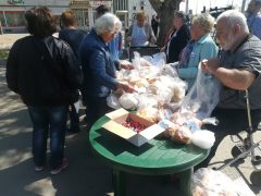 Már az ételosztás kezdete előtt egy órával legalább hatvanan várták türelmesen, hogy ebédhez jussanak. A déli harangszóig folyamatosan érkeztek az emberek, nagyon sokan kisgyermekkel. A nap végére mintegy 200 felnőtt és 30 gyerkőc lakhatott jól a húsvéti finomságokból. Ebben az évben még nem várták ilyen sokan, hogy ebédhez jussanak. Látszik, hogy a négynapos munkaszünet alatt a szociális ellátórendszer szünetel, a nincstelenek csak a jótékonysági osztásokon juthatnak ilyenkor ételhez.
