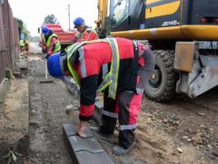 A Kadarcs utcán jelenleg aszfaltoznak,