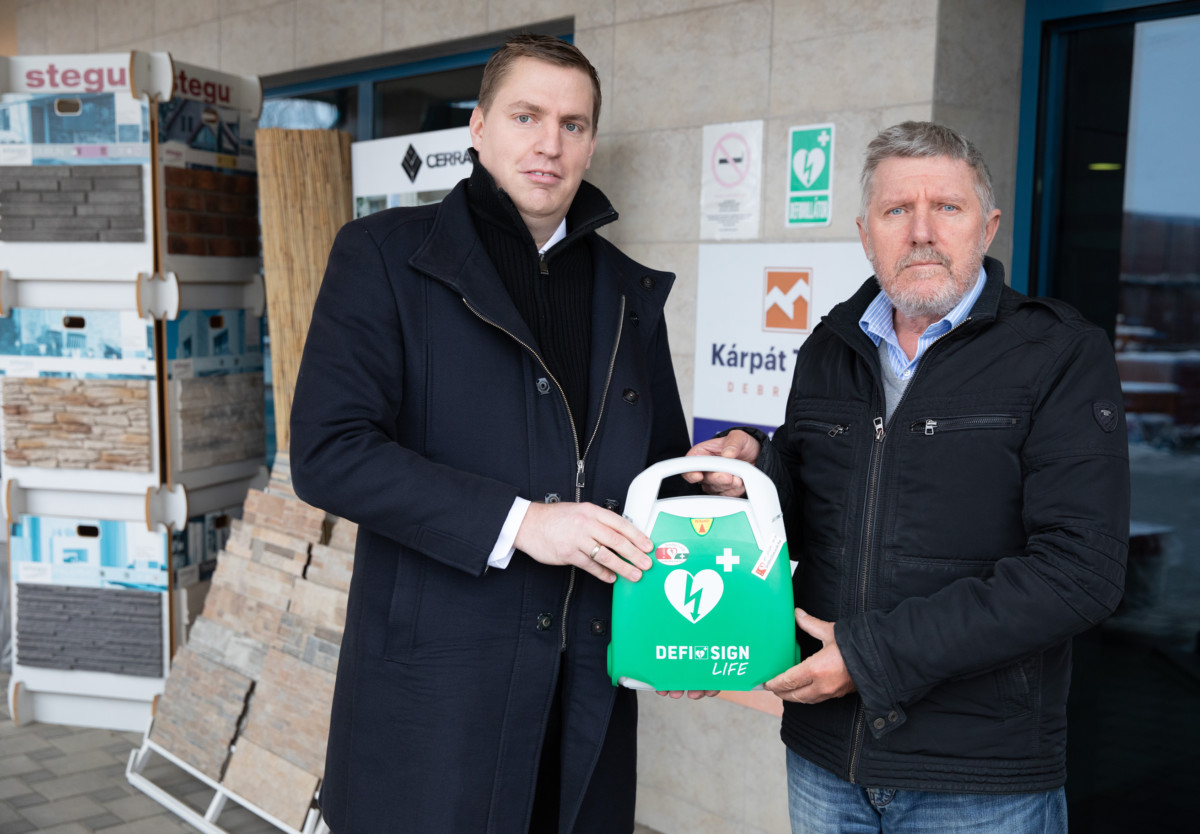 Horváth Zsolt, a Kárpát Tüzép Kft cégvezetője azért vásárolta meg az életmentő műszert, hogy ha a környéken arra bárkinek szüksége lenne, helyben legyen a segítség. Az építőanyag-kereskedés egy országos hálózat része. A Pannon-csoport vezetősége egy sajnálatos baleset miatt döntött úgy, hogy igyekeznek minden kereskedésben ilyen eszközt beszerezni. A több, mint 100 cég közül csaknem 30 helyszínen már meg is vásárolták a defibrillátor készüléket.