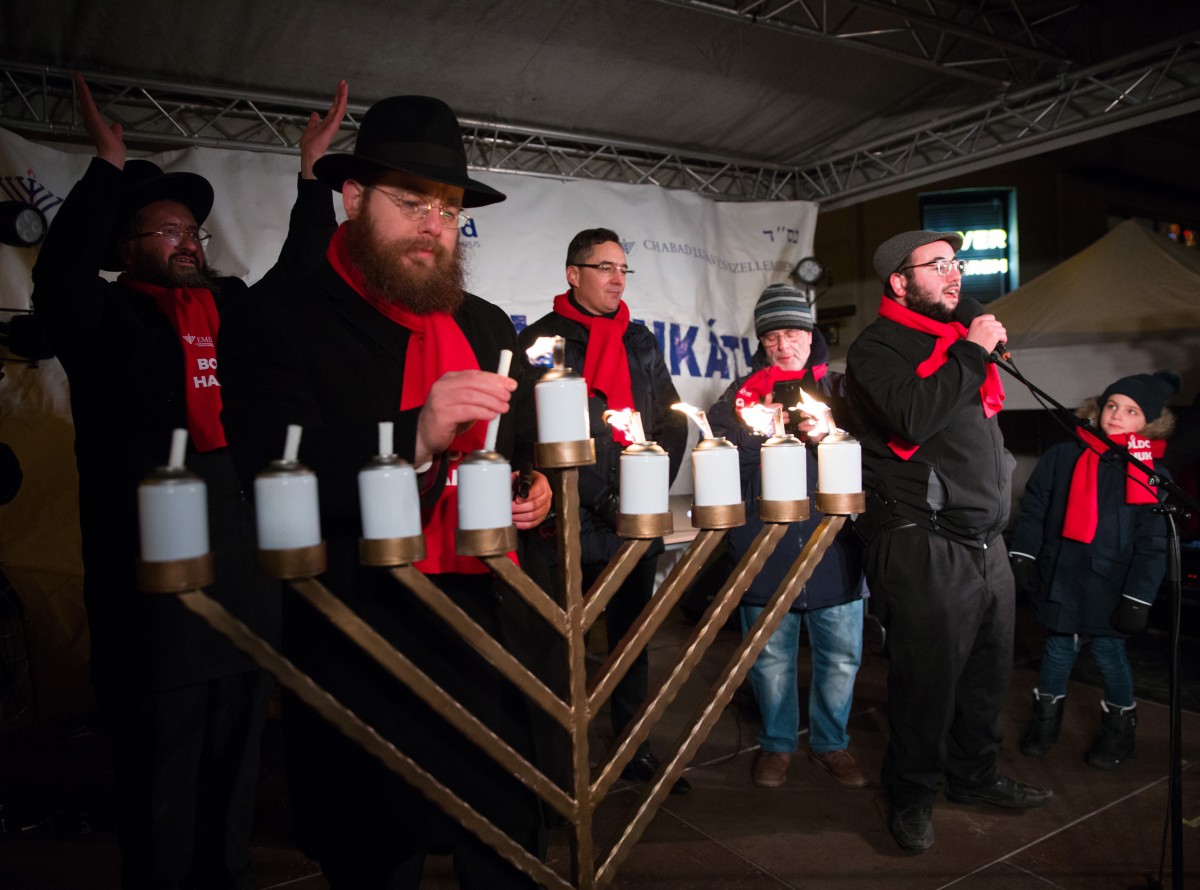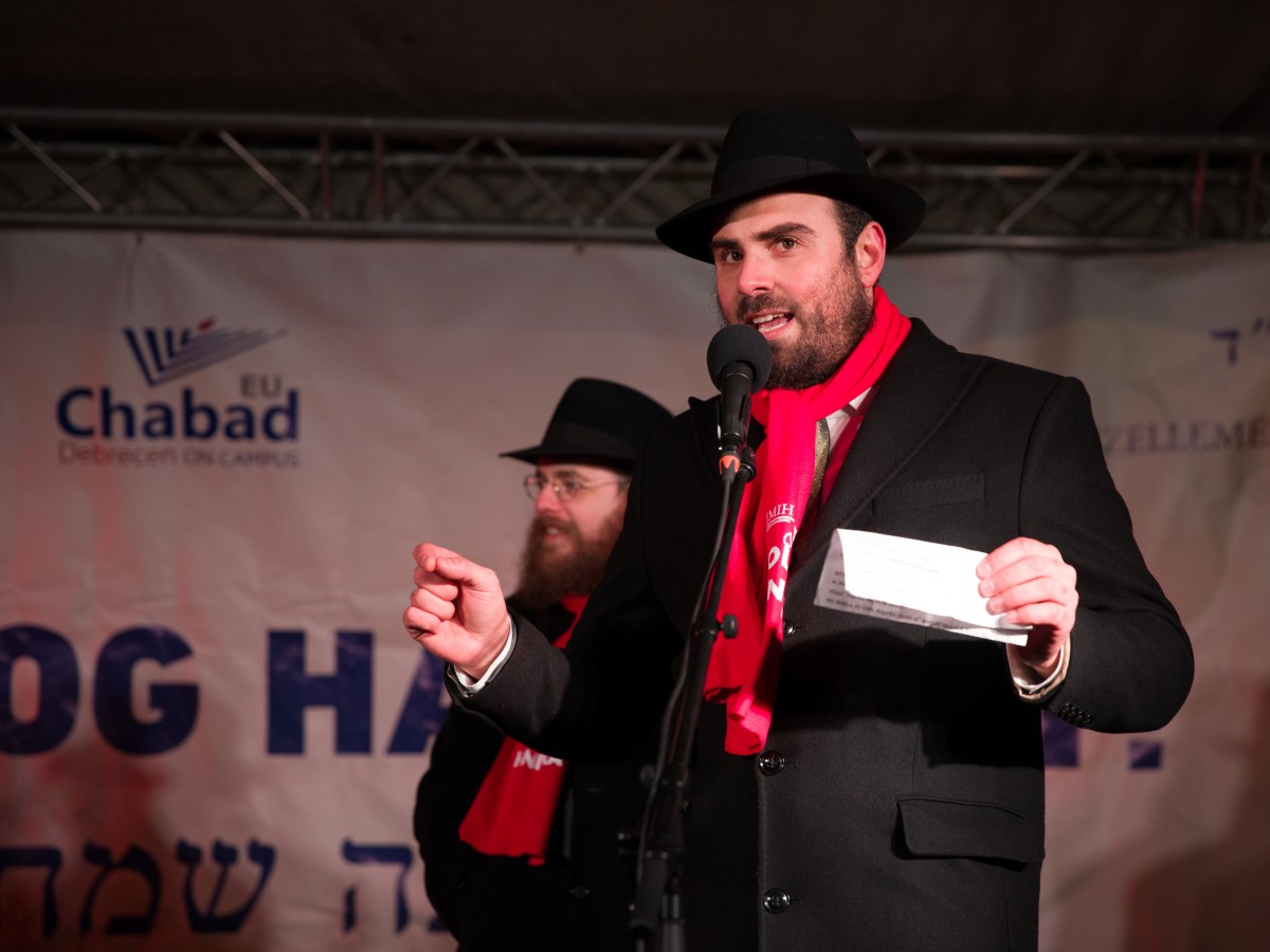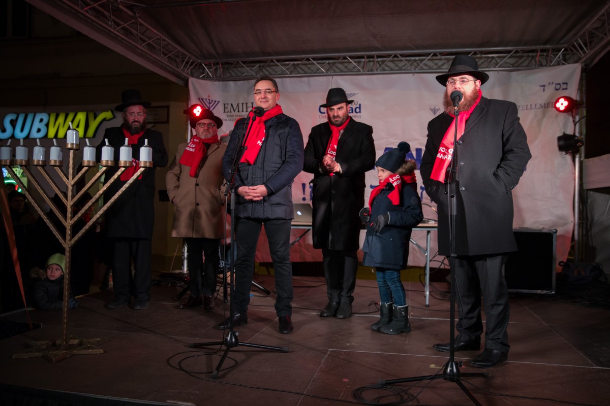 A Bajcsy-Zsilinszky utca Piac utcai torkolatánál felállított színpadnál egybegyűlteket az EMIH nevében Köves Slomó, a hitközség vezető rabbija köszöntötte. Szavai szerint hanuka minden napján a gyertyagyújtás alkalom arra, hogy tanuljunk valamit a fény különlegességéről. Miért is ünnep ez az időszak? Azért, mert kétezer évvel ezelőtt a zsidó makkabeus szabadságharcosok kis serege túlerőt legyőzve volt képes kivívni a zsidó nép szabadságát. De nem csak győzelmet arattak, henem megtisztították a jeruzsálemi Templomot a bálványoktól és meggyújtották a lángokat. Ezek a lángok csodálatos módon nyolc napon át égtek, pedig csak egy napra elegendő olaj volt.