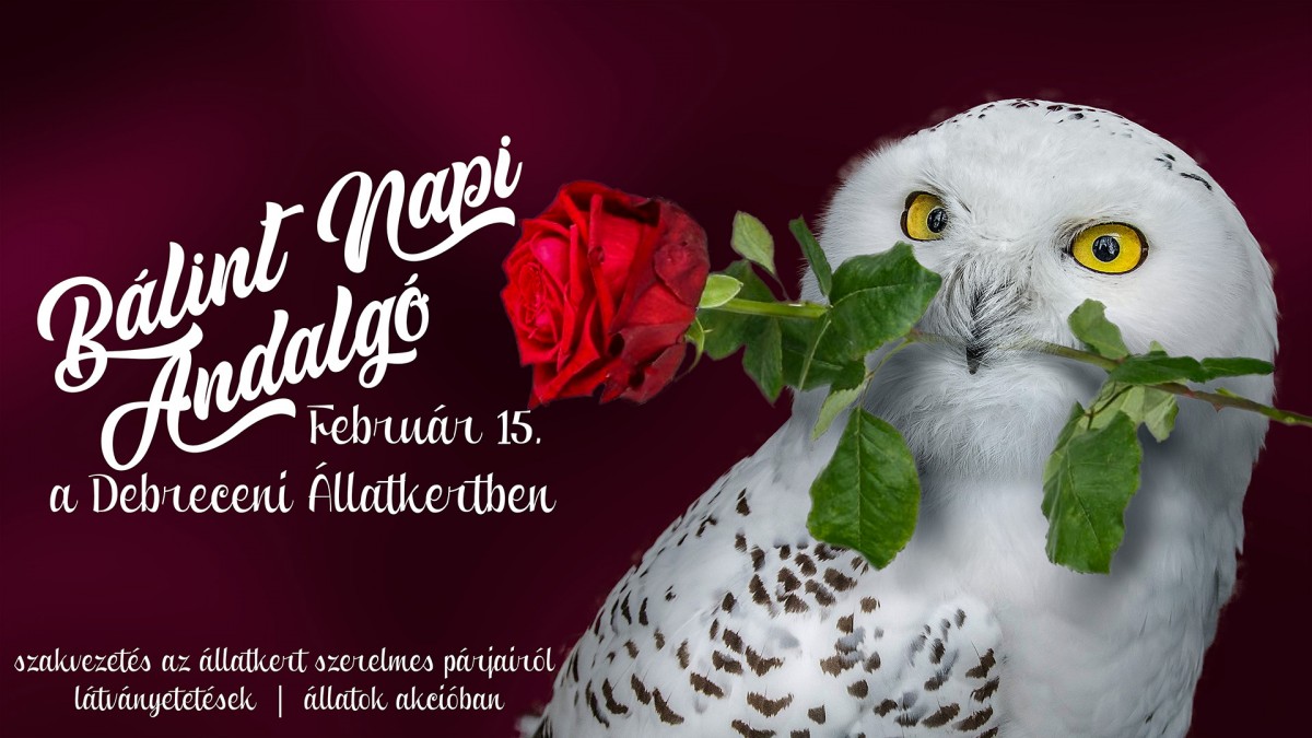 Február 15-én, szombaton, igazán különleges eseményben lehet része az állatok szerelmeseinek a debreceni állatkertben a Bálint Napi Andalgó alkalmával. Az érdeklődők az előre meghirdetett látványetetések időpontjában hallhatják a Nagyerdő fái alatt szövődött romantikus állati történeteket, de tájékozódhatnak az állatkertben végbemenő fajvédelmi programokról is. A Gibbonházban 11 órától Linda és Szigfrid, a debreceni állatkert nílusi vízilovainak több, mint 30 éves házassági históriájáról, majd 13 órától a tigriskifutónál Debrecen város szibériai tigriseiről mesélnek a gondozók. Ezután 14 órai kezdettel a Pálmaházban a vöröshasú piráják etetése által a faj hierarchikus életével szembesülhetnek, míg 14:30-tól a Magyarországon csupán a debreceni állatkertben tartott recés zsiráfok családjával és sikeres a faj mentőprogramjának történetével ismerkedhetnek meg a látogatók a Zsiráfházban.