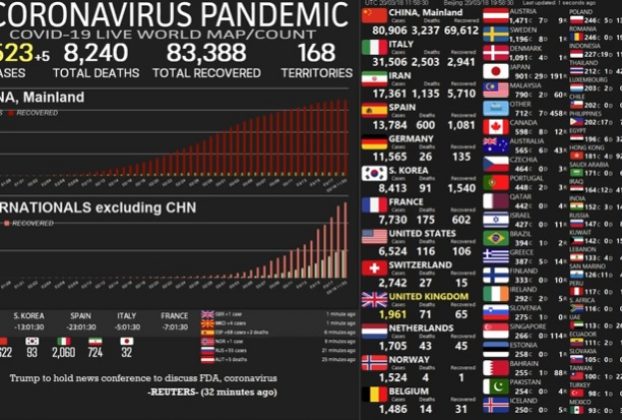 Az új típusú koronavírussal fertőzöttek száma már meghaladta a 200 ezret a Johns Hopkins Egyetem legfrissebb adatai szerint. A halálesetek száma 800 fölé nőtt, 83 ezer ember meggyógyult. A baltimore-i egyetem összesítése szerint a vírusfertőzést 156 országban és területen mutatták ki. A diagnosztizált esetek száma azonban nem tükrözi pontosan a valóságot, az egyes országokban többé-kevésbé … Bővebben: Meghaladta Debrecen lakosságát a koronavírus-fertőzöttek száma a világon – itt követhető a valós idejű statisztika