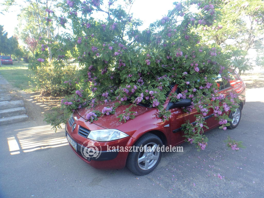 Egy négyméteres fa dőlt egy parkoló autóra csütörtökön Debrecenben, a Budai Nagy Antal utcában. A debreceni hivatásos tűzoltók motoros láncfűrésszel és kéziszerszámokkal avatkoztak be.