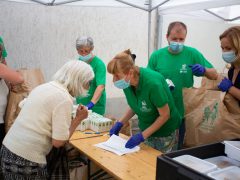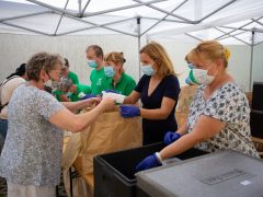 A Debreceni Karitatív Testület a Magyar Református Szeretetszolgálat közreműködésével tartós élelmiszert, valamint meleg étel osztott a Debrecen-Nagytemplomi Református Egyházközség „Reménysugár” Hajléktalanok Nappali Melegedőjében 2020. július 28-án.
