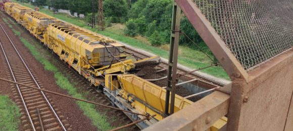 Ágyazat rostáló gép rótta a síneket a Nagyállomás közelében a hétvégén, a Vágóhíd utcai felüljáró alatt. Az ágyazat anyaga általában megfelelő méretűre zúzott magmás kőzetek, vagyis zúzottkő. Az ágyazat feladata a vágány alátámasztása mellett az aljakról kapott terhelés nagyobb felületen történő elosztása és egyenletesen átadása az alépítmény felületére. Mivel a vasúti vágány stabilitásának 60%-át az … Bővebben: Nem mindennapi gép haladt a debreceni vasútállomás környékén