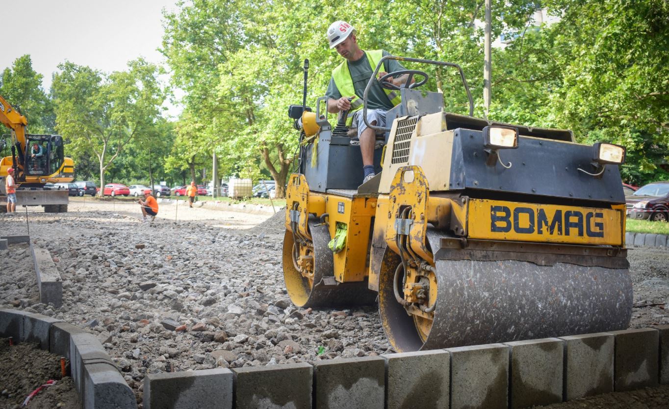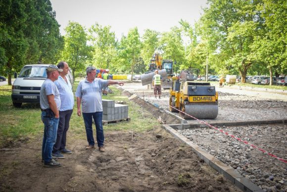 A most kialakított parkolók úgynevezett gyephézagos térkőburkolatúak lesznek, vagyis fű is marad a területen, így amellett, hogy megoldódik a vízelvezetés, nagyrészt megmarad a zöldfelület is. Természetesen ezzel még korántsem értünk a fejlesztések végére.