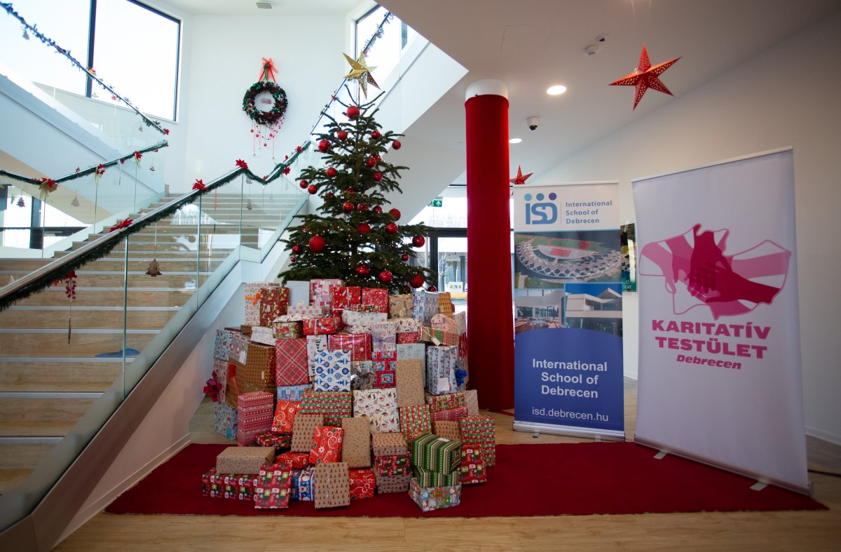 A Debreceni Nemzetközi Iskola tanulói és pedagógusai közel 200 karácsonyi csomagot állítottak össze, melyeket a Debreceni Karitatív Testületnek 2021. december 14-én adtak át annak érdekében, hogy a testület önkéntesei eljuttassák őket a rászoruló családokhoz.