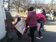 A hőmérő 10 órakor, minusz három fokot mutatott, szerencsére sütött a nap, nem fújt a szél, így a hőérzet kicsit talán más volt. Sajnos nincs olyan lehetőségünk, hogy ne az utcán kelljen ételt osztanunk, így ha esik, ha fúj, hidegben, melegben várjuk tiszta szívvel, szeretettel vendégeinket. Hiszünk abban, hogy a jóság nem kerül pénzbe.