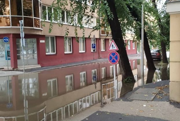 Áll a víz a debreceni belvárosban, fennakadások vannak a villamos- és a trolibusz-közlekedésben