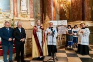 A gazdák aratókoszorújával érkezett meg Hajdúnánás polgármestere a Szent István-bazilikába