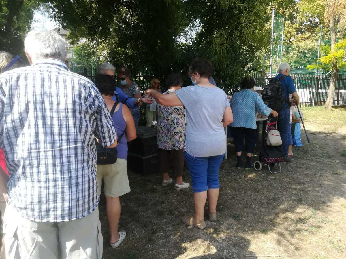 Ahogyan az utóbbi években mindig, most is a kisnyugdíjasok voltak többségben. Mindkét nap sok új arcot láttunk, mind többen szorulnak arra, hogy így hónap végén ételért álljanak sorba. Egy 70 év körüli hölgy igencsak kifakadt, és indulatosan mondta a körülötte állóknak: “Nem tudom, mi lesz a télen, előre rettegek. Ha a gázt használom enni nem tudok, ha eszem, akkor pedig megfagyhatok a hideg lakásban. Szégyellje magát, aki ide juttatott bennünket!”