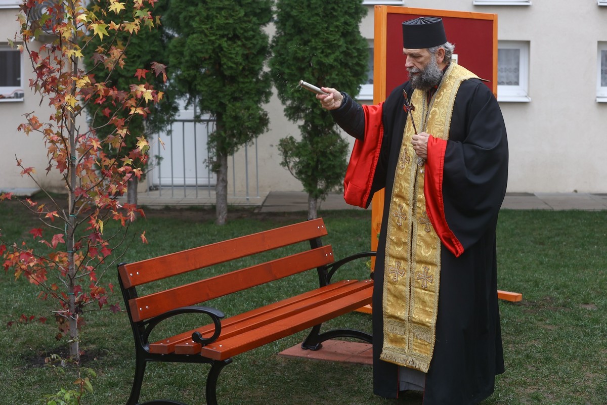 A Találkozások padjának és egy frissen ültetett juharfának megáldásával kezdődött az ünnepség a Szent Efrém Görögkatolikus Általános Iskolában.