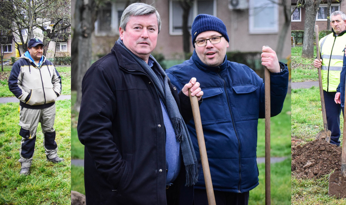 Pénteken folytatódott a faültetés a Tócóskertben. A kertészeken túl Varga András és Pósán László is lapátot ragadott. A munkásokkal ellentétben ők rutinból hozták a vidámságot, míg az önkormányzat fotósa dokumentálta az eseményeket.