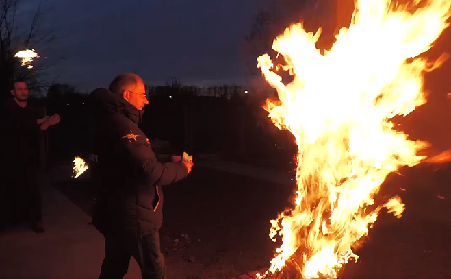 A kiszebáb égetésről jutott eszünkbe. Emlékeznek még, amikor Kósa Lajos tavaly szájmaszkot dobott a tűzre Józsán, hogy a téllel együtt attól is megszabaduljon?