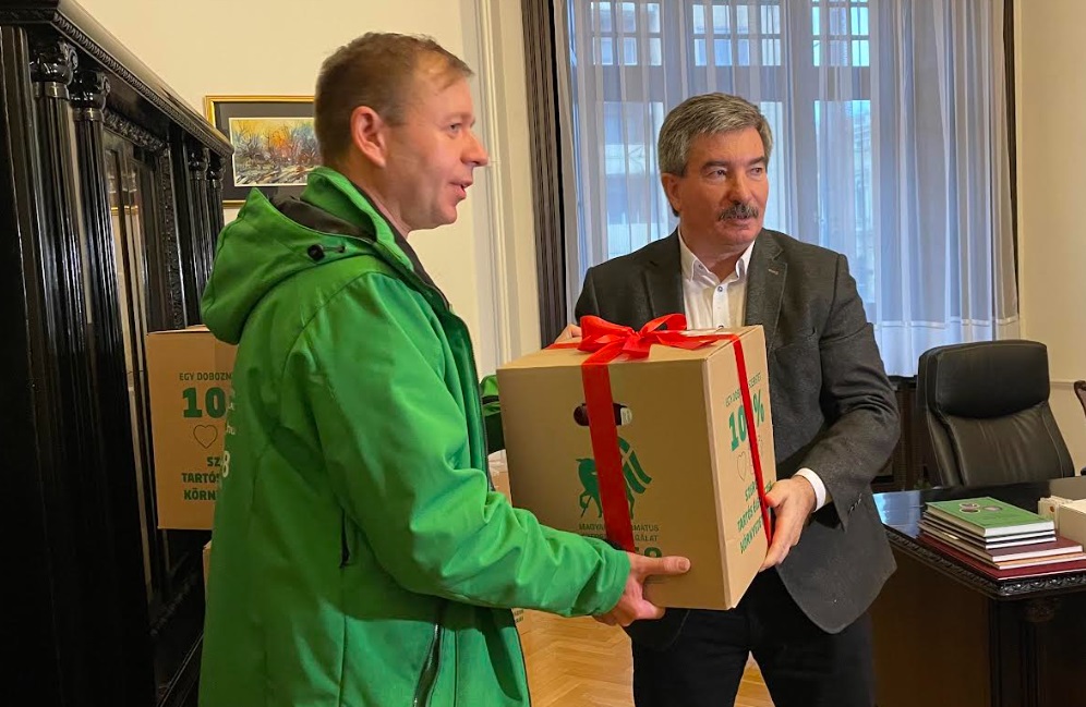 Több száz debreceni család kap adományt a Református Szeretetszolgálattól. Az akcióhoz idén is csatlakoztak Hajdú-Bihar megye önkormányzatának dolgozói. Harminc dobozt töltöttek meg tartós élelmiszerrel, tisztálkodó-és tisztitószerekkel. A szeretetdoboz-átadáson Pajna Zoltán elnök nyújtotta át az adományokat Oláh István lelkipásztornak.