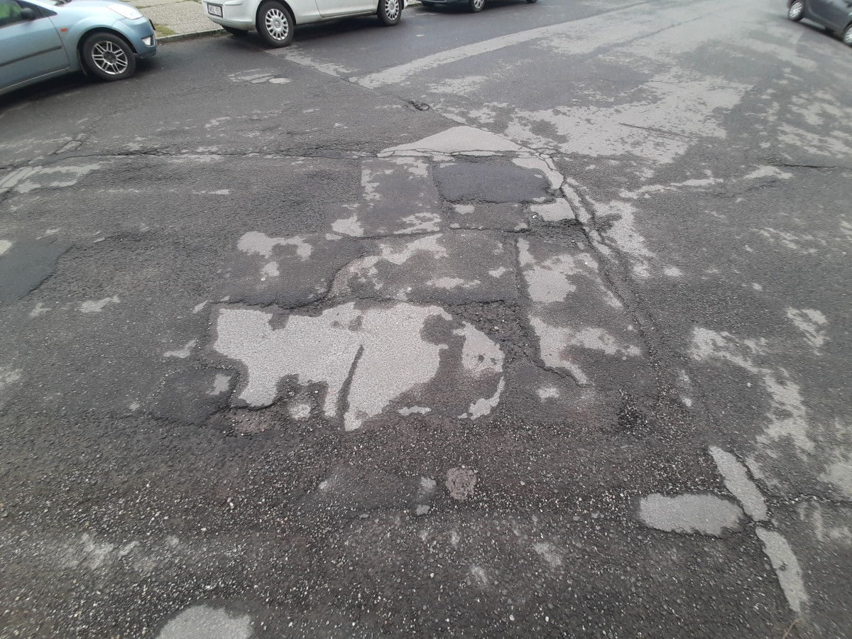 Hiába toldják-foldják, ez már nem lesz jobb. Az itt élők dolgát megkeseríti a Derék utca állapota, ami ilyen keservesen néz ki a sok kátyúval és befoltozott lyukkal: