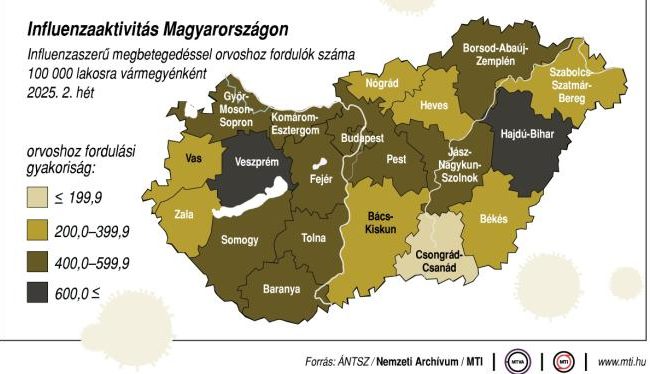 A tavalyi év 40. és az idei év 2. hete között 3486 vizsgálati anyagot dolgoztak fel az NNGYK laboratóriumban. A minták közül 260-ban az influenza valamelyik típusát, 477 esetben COVID-19 fertőzést mutattak ki. A többi mintában egyéb vírusok jelenlétét állapítottak meg.