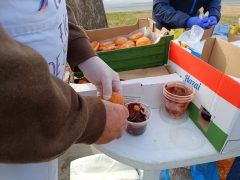 Sajnos nem vagyunk tehetős emberek, így a nem “ünnepi” ételosztásainkon “csak” 150 vendégünknek tudunk ételt biztosítani. Kénytelenek vagyunk sorszámot osztani, így azoknak, akik későn jönnek, nem biztos, hogy jut ebéd. Mindezt nehéz feldolgozni, de sajnos többre nem telik.