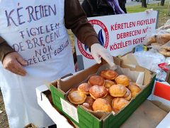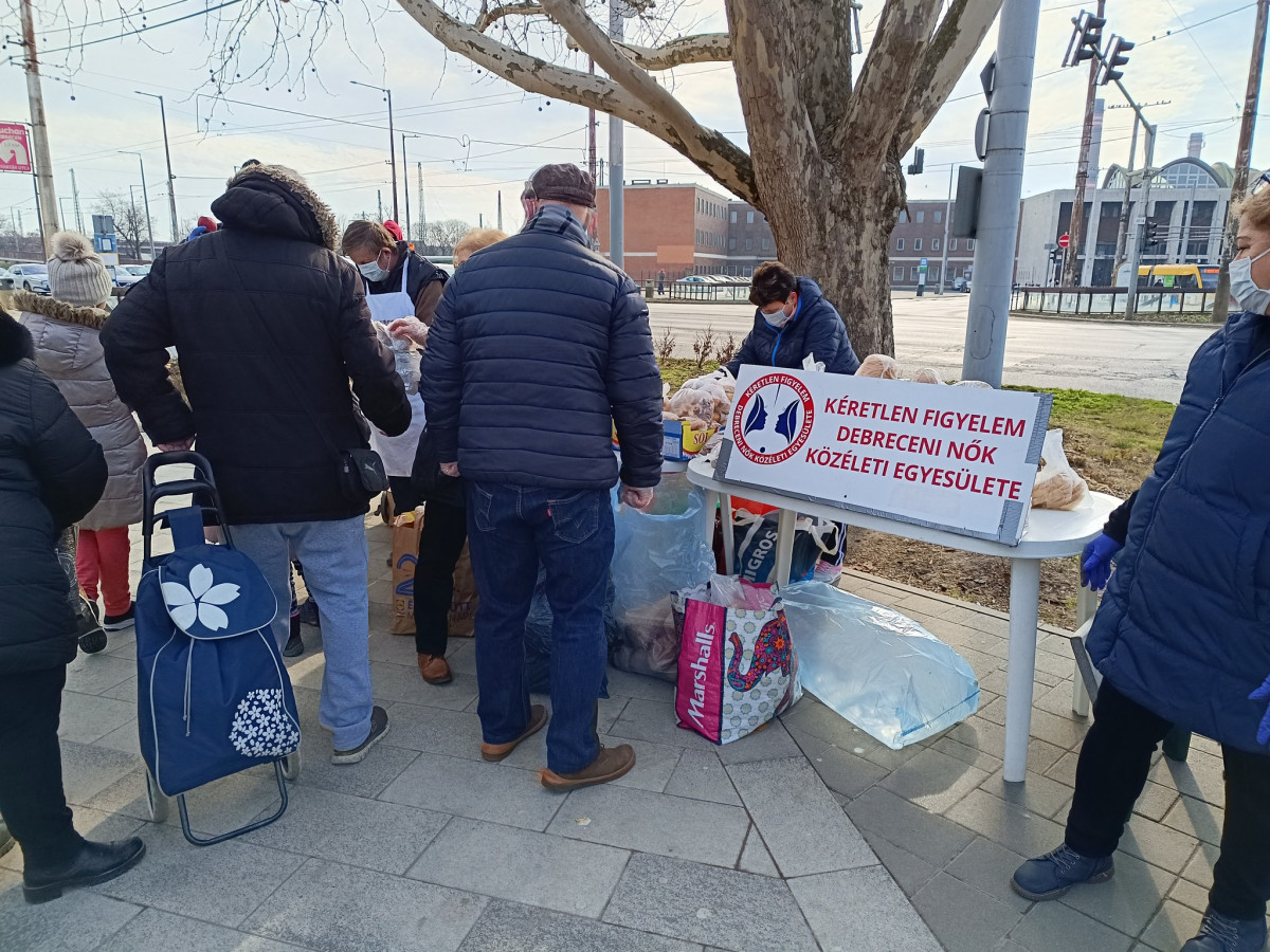 Mindezek után a Kéretlen Figyelem Debreceni Nők Közéleti Egyesülete mai, hagyományos ételosztásán megdöbbenve találkoztunk a való élettel. A sok lózungtól még itt, Debrecenben sem laknak jól az emberek, kénytelenek azt lesni, hol és mikor osztanak ételt a civilek.