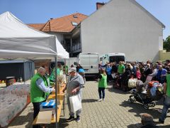 A csoportos adományosztás délelőtt 11 órakor kezdődött a Magyar Református Szeretetszolgálat Leány utcai irodájának parkolójában. Az ünnepi eseményen áhítatot tartott dr. Fekete Károly, a Tiszántúli Református Egyházkerület püspöke, aki a feltámadás reménységéről és az összefogás erejéről beszélt. Az áhítatot követően Juhász Márton, az MRSZ ügyvezetője vezetésével megkezdődött a 150 darab, bőségesen megtöltött élelmiszercsomag kiosztása. A csomagok alapvető élelmiszereket, higiénés termékeket és vitaminokat is tartalmaztak, hozzájárulva a családok mindennapi szükségleteinek enyhítéséhez.