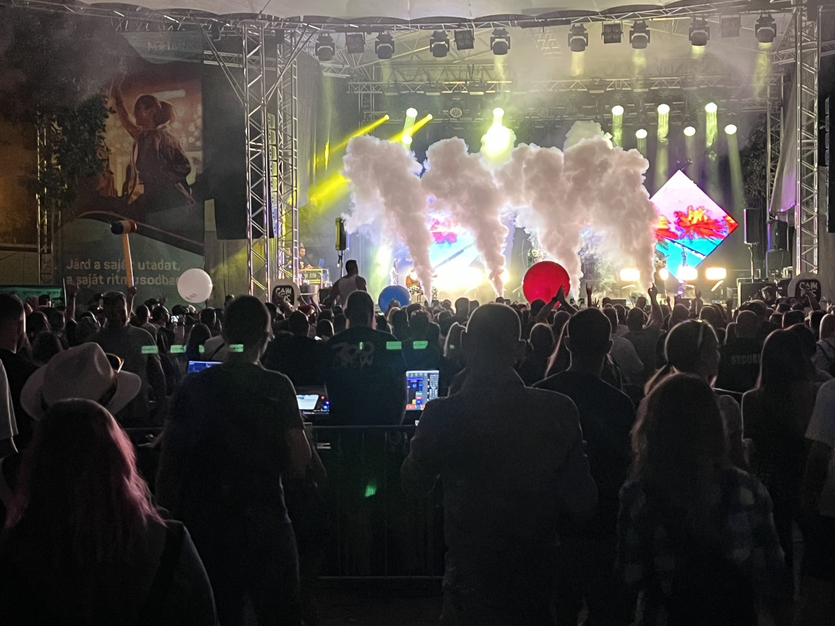 Az „Élj a mának” című dalnál különlegességként az együttes háttérszemélyzete is felment a színpadra, ami nem túl gyakori az ilyen koncerteken – legalábbis számomra ez egy ritka pillanat volt. Röviddel ezután jött az üzenetében hasonló „Egyszer élünk”, majd a négybetűs, sokatmondó M.A.T.T. is, amely a Merni, Akarni, Tenni, Tudni szavakból áll össze.
