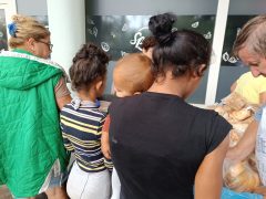 Nagyon hálásak vagyunk azoknak a debrecenieknek, akik rendszeresen pizzát hoznak a gyermekeknek, vagy éppen csokoládét. Tisztelettel köszönjük a hajdúszoboszlói Szováti Kemencés Pékség segítségét. Ma külön is sütöttek azért, hogy senki sem menjen üres kézzel haza az ételosztásról