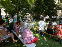 Debrecen Megyei Jogú Város Önkormányzata, a Debrecen-Nagytemplomi Református Egyházközség és a Debreceni Karitatív Testület Találkozások a szeretet virágoskertjében címmel nyitott kiállítást a 2025. augusztus 16-án a Nagytemplom mögötti Emlékkertben.