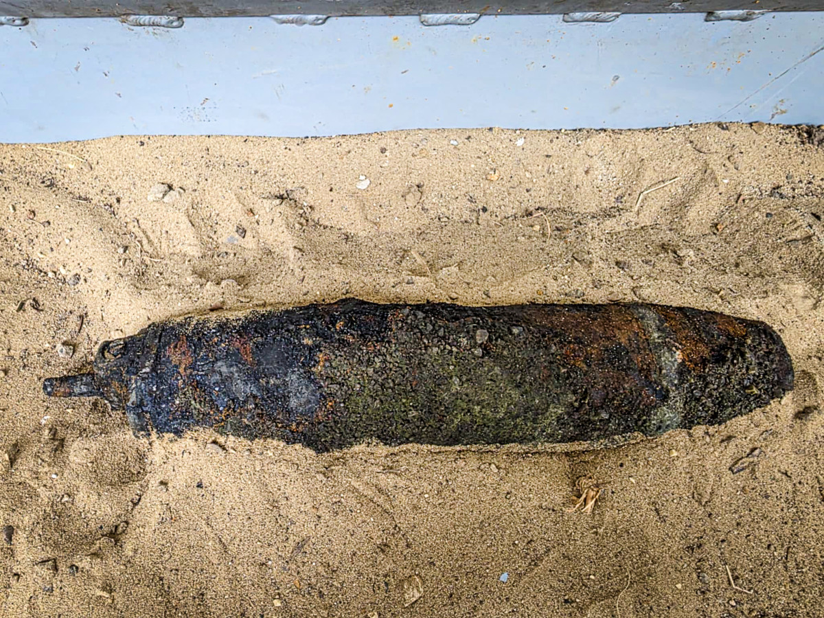 Azt írták: a folyó alacsony vízállása miatt bukkantak a második világháborús, amerikai, 75 milliméteres repesz-romboló gránátra a korábban víz lepte parton.