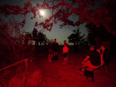 Nem egészen egy hónap telt el azóta, s máris a Holdhoz kapcsolódó újabb eseménynek adott otthont a Hortobágyi Nemzeti Park állatkertje. Az elmúlt hétvégén, szombaton egy, a Perseidák „csillaghullásánál” ritkább esemény megfigyelésére szerveztek esti programot, mely ellentétben a mindent bevilágító augusztusi teliholdas éjszakával, most a sötétség miatt volt különleges hangulatú. A Föld ezen az estén olyannyira takarta ki egy-másfél órára a Holdat a Nap sugaraitól, hogy az fényében megkopottan, kissé sejtelmesen-narancsosan derengett fel. Ugyanakkor a homály órája kiváló lehetőséget teremtett az égbolt csillagainak, távoli galaxisainak szabad szemmel és távcsövekkel való felfedezésére. A nemzeti park munkatársain túl, a Terminus Egyesület aktivistái jóvoltából 10 távcső meredt az égre, s ugyanennyi amatőr csillagász ontotta az érdekesebbnél érdekesebb történeteket a csillagokról, mélyég objektumokról és a pásztorok csillagismeretéről. A csillagász távcsövek műszaki paramétereit is összevetették egymással, így akik hajlanak a