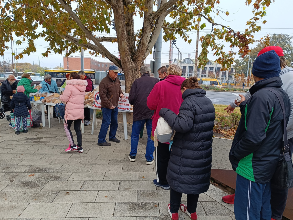 Az ingyenes ételosztáson egy tál meleg ebéddel, friss kenyérrel és péksüteménnyel vártak minden rászorulót.