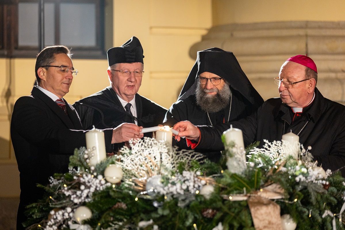A beszéd után felragyogtak a belváros ünnepi díszfényei. Az első adventi gyertya meggyújtása a hagyományokhoz hűen a görögkatolikus, a római katolikus és a református egyház képviselőivel közösen történt. Adventi gondolatait a jelenlévőkkel megosztotta Palánki Ferenc, a Debrecen–Nyíregyházi Egyházmegye megyéspüspöke, Kocsis Fülöp, a Hajdúdorogi Főegyházmegye érsek-metropolitája és Fekete Károly, a Tiszántúli Református Egyházkerület püspöke is.