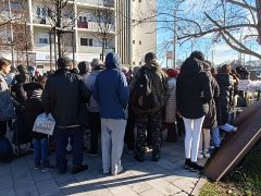 A Petőfi téren a sor egyre hosszabb lett. Felnőttek, gyermekek, idősek és középkorúak érkeztek folyamatosan. Többségük kisnyugdíjas vagy nagycsaládos. Őket különösen súlyosan érinti az ünnepi időszak, hiszen a hétköznapokon is gyakran nélkülöznek.
