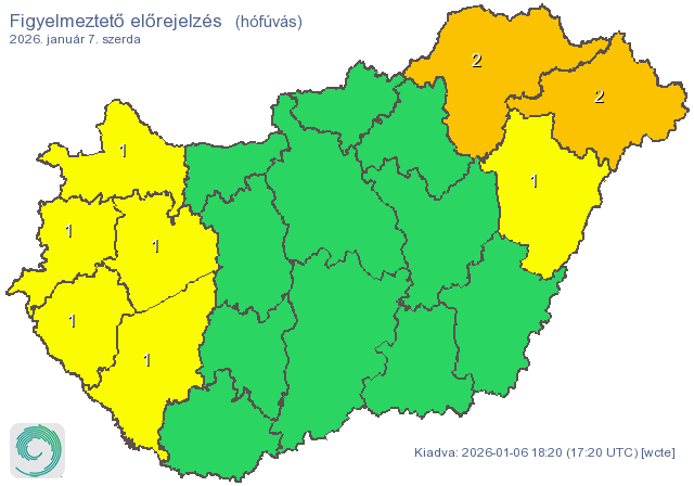 Szerdán Szabolcs-Szatmár-Bereg és Borsod-Abaúj-Zemplén megyében másodfokú (narancssárga) veszélyjelzés lesz érvényben a hófúvás veszélye miatt. Hajdú-Biharra ugyanezen okból citromsárga (elsőfokú) figyelmeztetést adtak ki.
