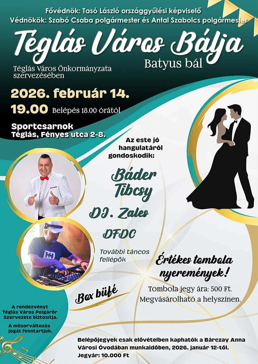 Közzétették a 2026-os Téglás Város Bálja meghívóját, amelyből kiderül: a rendezvény “fővédnöke” az idén egyéniben már nem induló Tasó László fideszes országgyűlési képviselő lesz, a “védnökök” pedig Tasó utódja, Antal Szabolcs hajdúsámsoni fideszes polgármester, valamint Szabó Csaba, Téglás fideszes városvezetője lesznek.