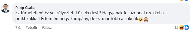 – fogalmazott, majd arra kérte az érintetteket, hogy azonnal hagyjanak fel ezzel a magatartással. Hozzátette: a közlekedésbiztonság közös ügy, vigyáznunk kell egymásra.