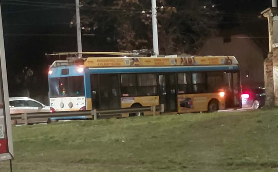 Egy lerobbant troli okoz nagy dugót Debrecenben, az Árpád téren.