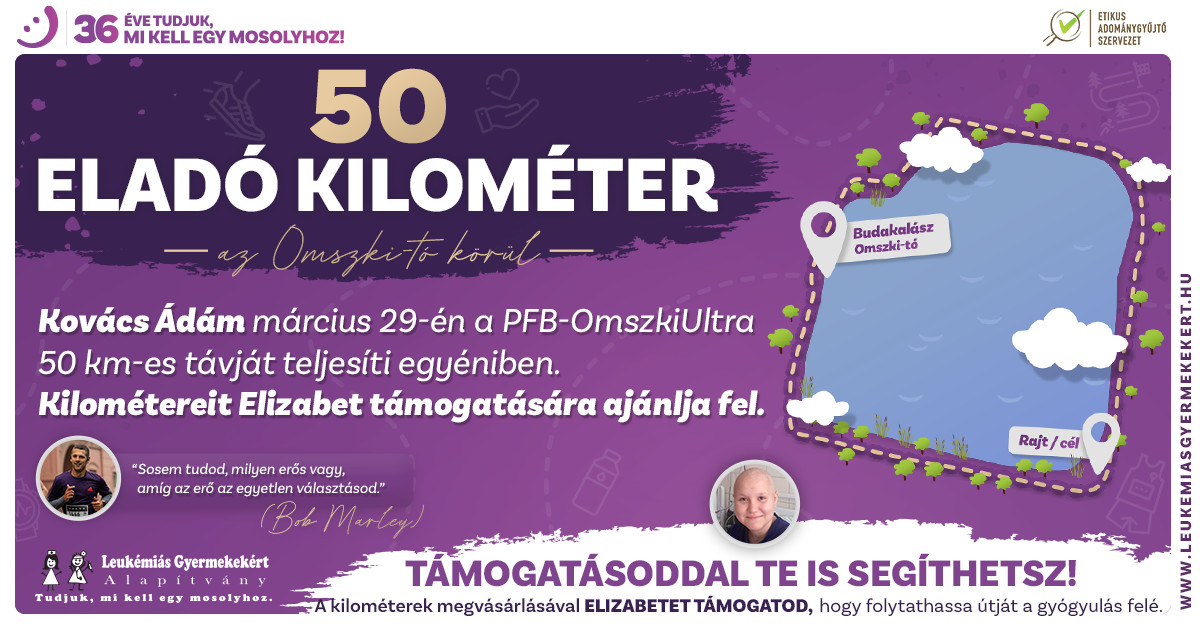 Mindössze két hét van hátra Kovács Ádám első 50 kilométeres ultraversenyéig, de a debreceni sportoló már most túlszárnyalta eredeti célkitűzését. Az OmszkiUltra 50 versenyre készülő futó a 14 éves, leukémiával küzdő Elizabet gyógyulásáért indított gyűjtést, amely az elmúlt hetekben hatalmas lendületet vett: eddig 70 kilométernyi jelképes támogatás, összesen 210 ezer forint gyűlt össze.