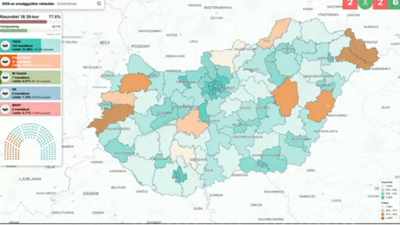 45 százalékos feldolgozottságnál egyedül Hajdú-Bihar megye 4. számú választókerületében vezet a Fidesz.